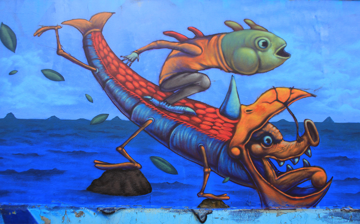 Muro realizado dentro del Festival “Policromía de verano” realizado en la playa El Bejuco en la costa de Michoacán el mes de Julio de 2014.